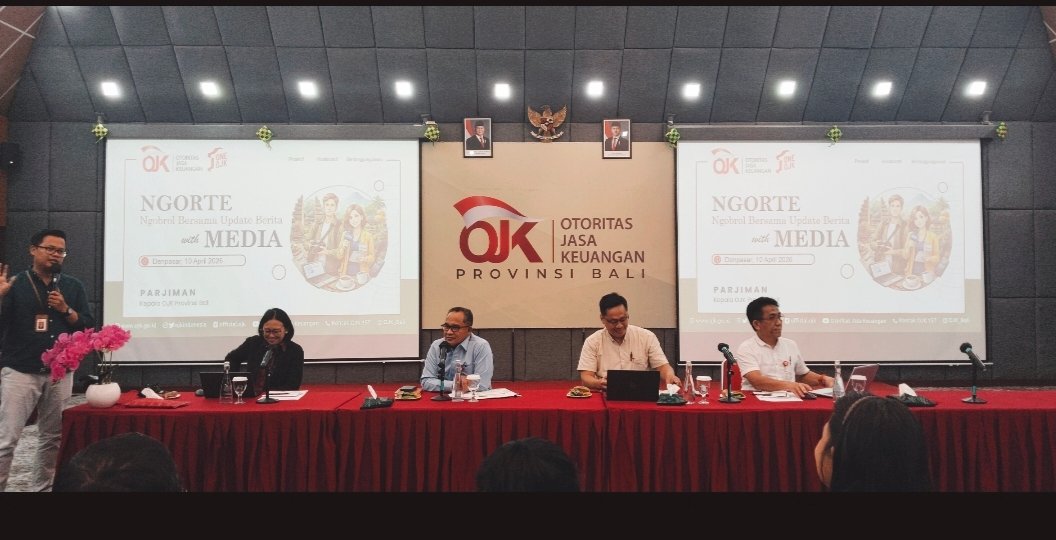 Demikian disampaikan OJK dalam acara Ngorte (Ngobrol Update Berita) bersama media, jumat (10/4/2026) di kantor OJK Bali dengan narasumber pimpinan OJK Bali diantaranya, Kepala OJK Bali, Parjiman, Kepala Direktorat Pengawasan Perilaku Pelaku Usaha Jasa Keuangan, Edukasi, Pelindungan Konsuman dan Layanan Manajemen Strategis OJK Provinsi Bali, Irhamsah, Kepala Divisi Pengawasan Lembaga Jasa Keuangan 3 OJK Provinsi Bali, Ni Made Novi Susilowati dan Kepala Divisi Pengawasan Lembaga Jasa Keuangan 4 OJK Provinsi Bali, Zulkifli.