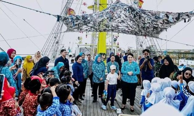 Ketua Tim Penggerak Pemberdayaan Kesejahteraan Keluarga (TP PKK) Kota Medan, Airin Rico Waas, mengajak Siswa Pendidikan Anak Usia Dini (PAUD) Fitri dan Taman Kanak-Kanak (TK) Fitria Al-Islam mengunjungi KRI Bima Suci yang sandar di Pelabuhan Belawan, Selasa (07/04/2026). Didampingi orang tua, anak-anak tampak antusias menjelajahi setiap sudut kapal layar milik TNI Angkatan Laut tersebut. Mereka belajar sambil bermain.
