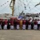 “Assalamualaikum! Senang bisa kumpul-kumpul. Hari ini kita bisa jalan-jalan sambil belajar, melihat seperti apa kapal KRI Bima Suci,” ujar Airin.