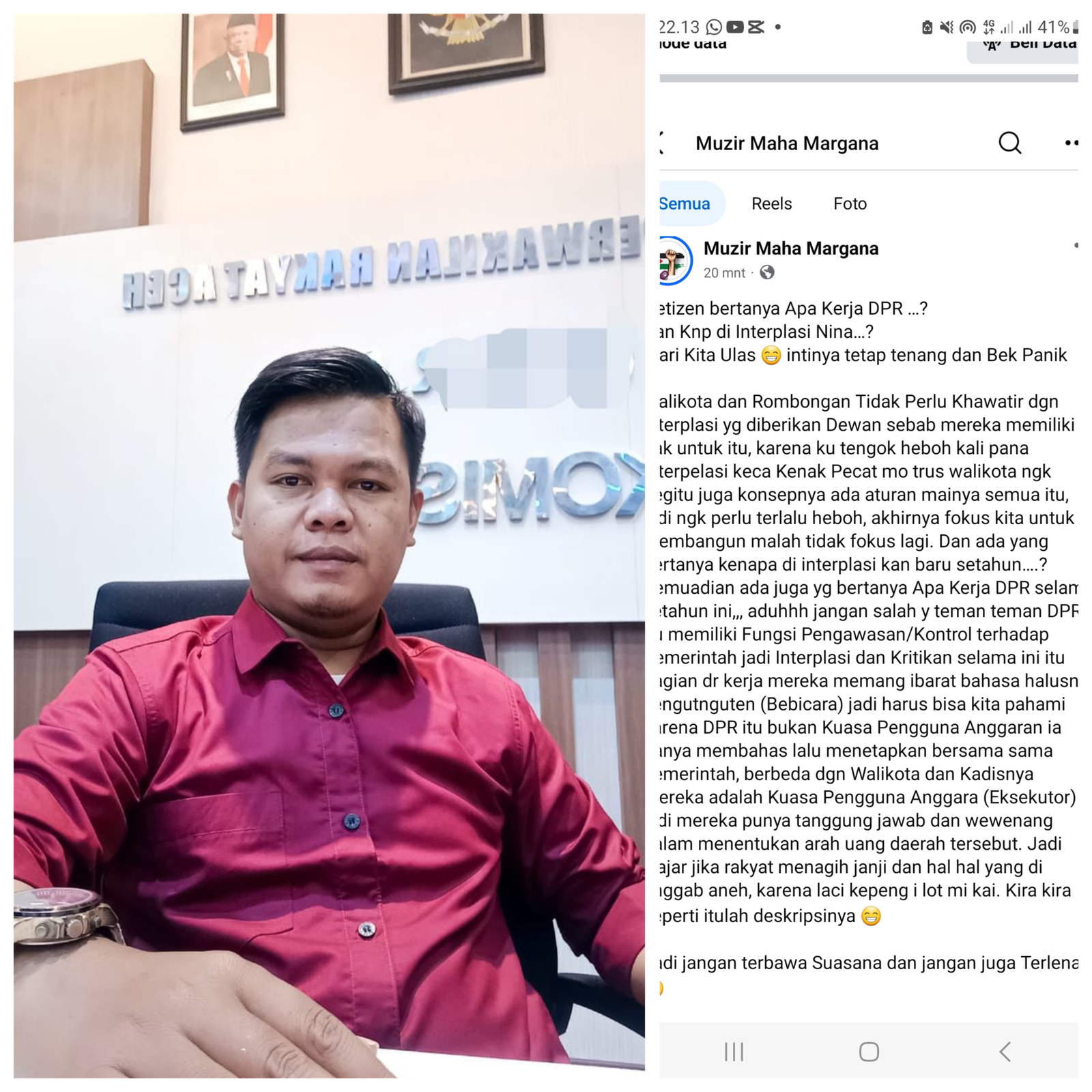 Akun Facebook Muzir Maha Margana Tegaskan: “Tenang, Bek Panik… Interpelasi Itu Kerja DPRK, Bukan Ancaman”