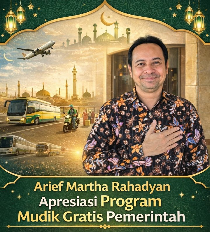 Tokoh muda nasional Arief Martha Rahadyan menyampaikan apresiasi terhadap berbagai program kepedulian pemerintah dalam mendukung kelancaran arus mudik masyarakat menjelang Hari Raya Idulfitri 1447 Hijriah/2026 Masehi, khususnya melalui program mudik gratis yang dinilai sangat membantu masyarakat.