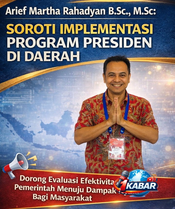 Arief Martha Rahadyan, menyoroti pentingnya penguatan implementasi program-program Presiden di tingkat daerah agar benar-benar memberikan dampak nyata bagi masyarakat.Arief menilai bahwa berbagai program pemerintah secara konsep sudah dirancang dengan baik dan memiliki tujuan strategis. Namun, dalam pelaksanaannya di daerah, masih ditemukan sejumlah kendala yang menghambat efektivitas program tersebut.