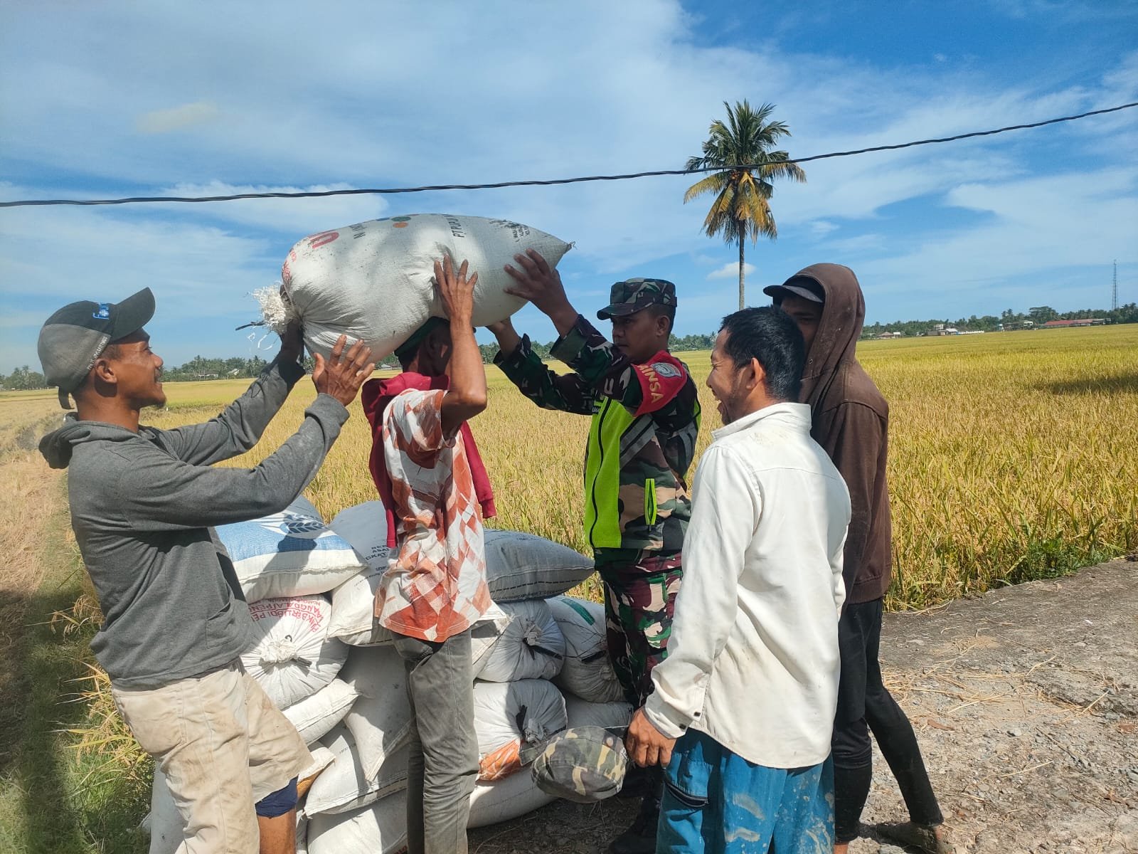 Di lokasi, Sertu Klimanto ikut turun langsung membantu warga memanen padi. Ia juga berdialog dengan kelompok tani terkait hasil panen, kendala di lapangan, serta kesiapan lahan untuk musim tanam berikutnya.
