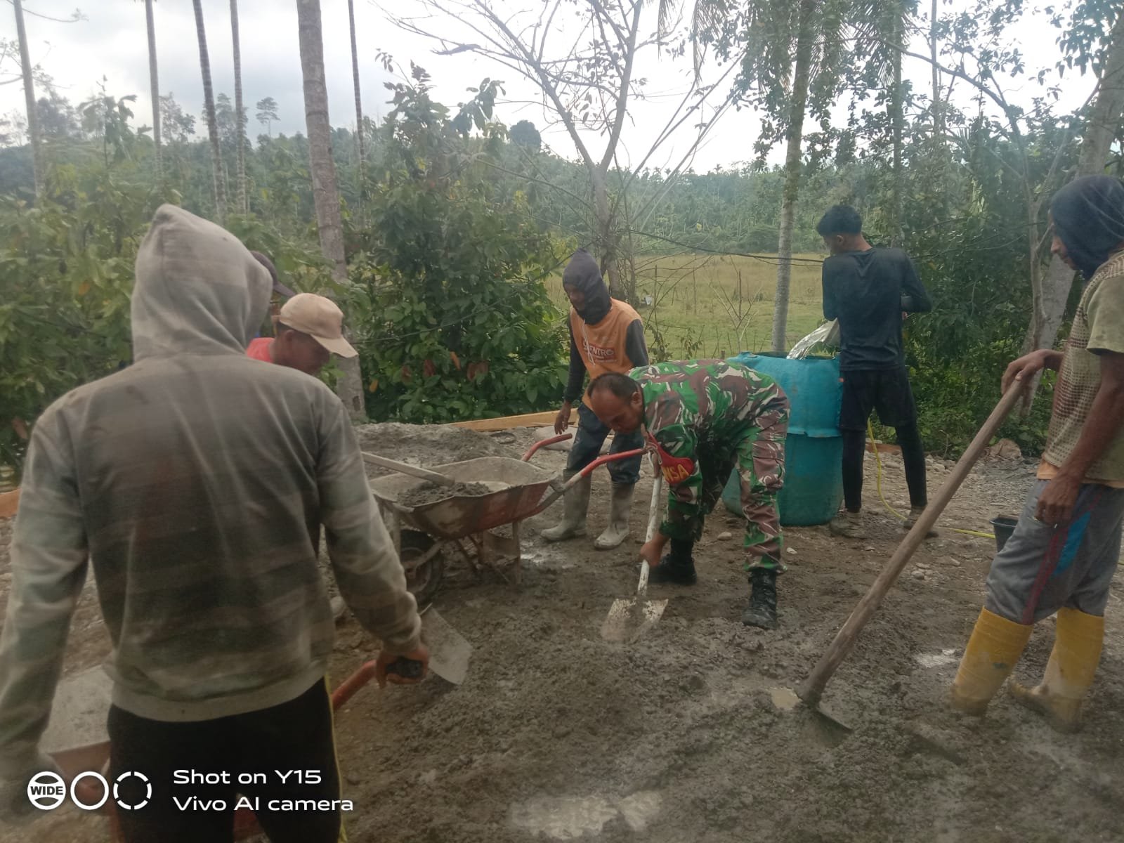 Bandar Baru– Babinsa Koramil 11/Bandar Baru, Sertu Syamsul Efendi, melaksanakan kegiatan gotong royong bersama masyarakat Desa Dayah Langgin, Sabtu (4/4/2026). Kegiatan tersebut berupa pembuatan dan pengecoran pintu pagar meunasah setempat.