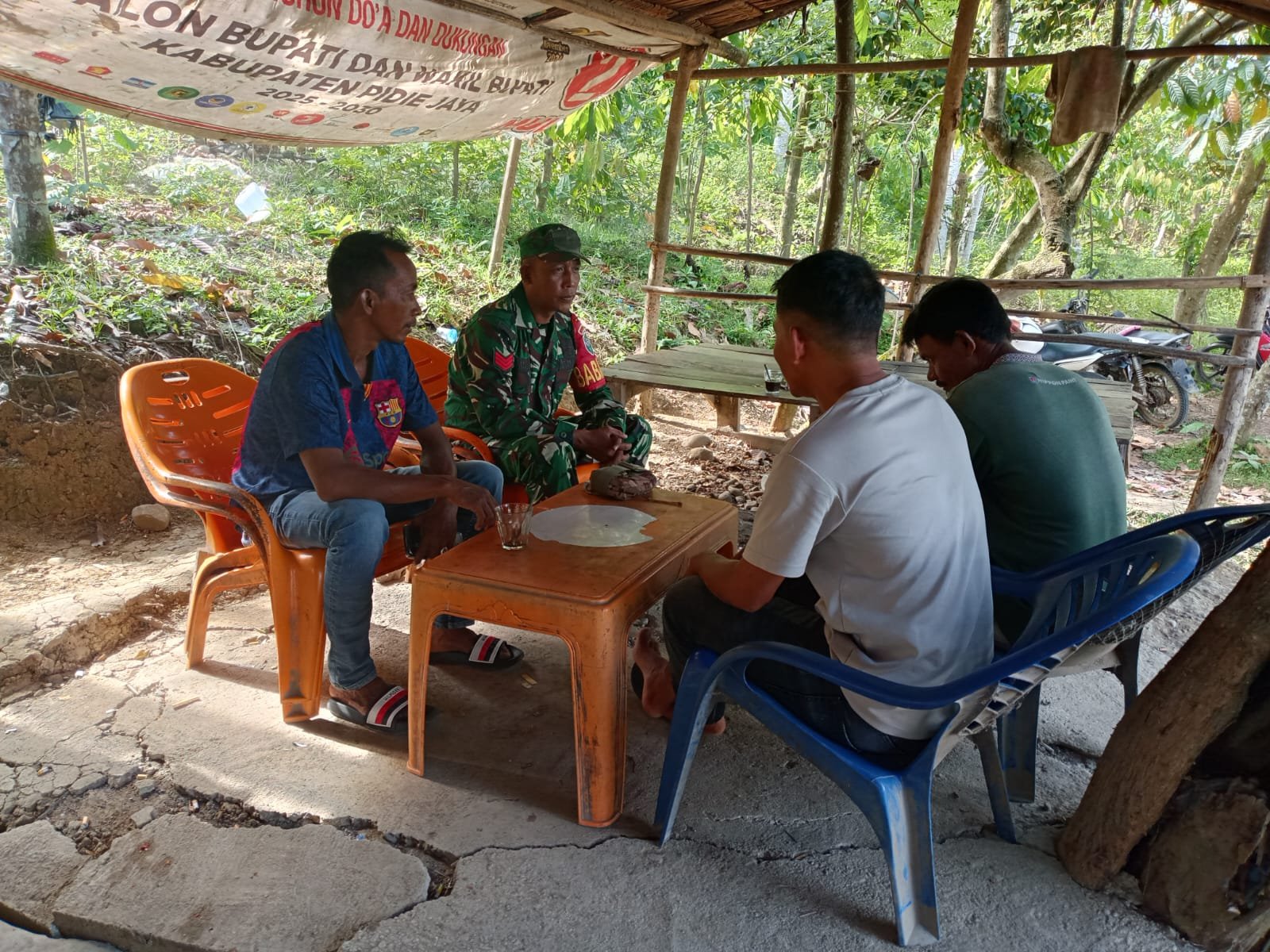 Seperti yang dilakukan oleh Babinsa Koramil 11/BB Kodim 0102/Pidie Kopka iskandar, dalam menjalin rasa keakraban serta kebersamaan yang baik dengan warga di salah satu warung kopi di Desa kayee jatoe, Kecamatatan Bandar Baru Kabupaten Pidie Jaya.