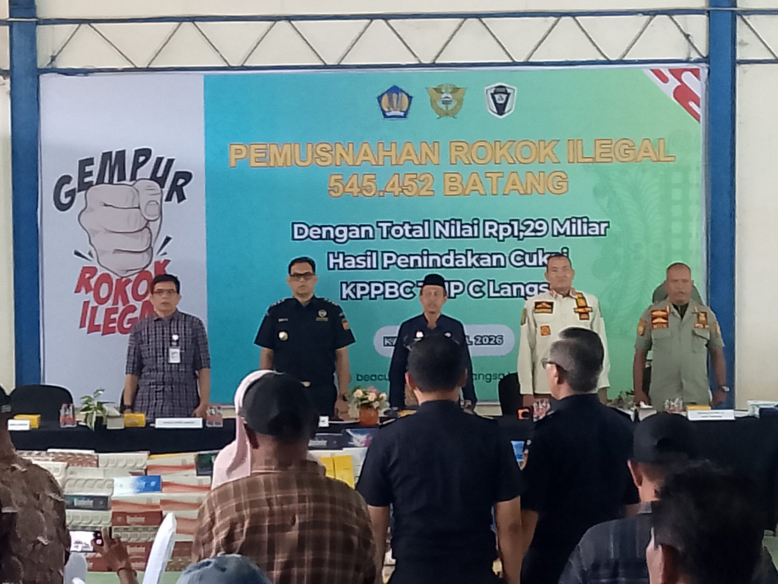 9 April 2026 – Kantor Pengawasan dan Pelayanan Bea dan Cukai Tipe Madya Pabean C Langsa (Bea Cukai Langsa) melaksanakan pemusnahan Barang Kena Cukai Hasil Tembakau (BKC HT) llegal berupa 545.452 batang rokok di lingkungan Kantor Bea Cukai Langsa, Provinsi Aceh, pada Kamis, 9 April 2026. Kegiatan ini merupakan tindak lanjut atas hasil penindakan di bidang cukai sekaligus bagian dari pelaksanaan tugas Direktorat Jenderal Bea dan Cukai di bidang pengawasan, penegakan hukum, pelayanan dan fasilitasi, serta optimalisasi penerimaan negara.