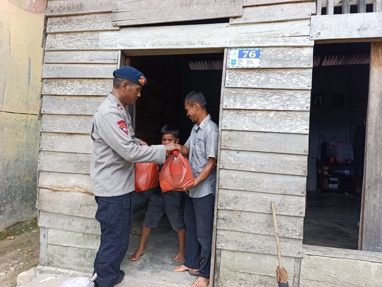 Dengan semangat berbagi, personel Brimob langsung turun kelapangan, mendistribusikan paket sembako yang berisi kebutuhan pokok seperti minyak goreng, gula dan bahan makanan lainnya