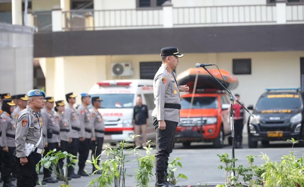 Kapolrestabes Medan, Kombes Pol Dr. Jean Calvijn Simanjuntak, S.I.K., M.H., memimpin Apel Gelar Pasukan Operasi Ketupat Toba 2026 sebagai bentuk kesiapsiagaan bersama dalam mengamankan Perayaan Idul Fitri 1447 H di Kota Medan.