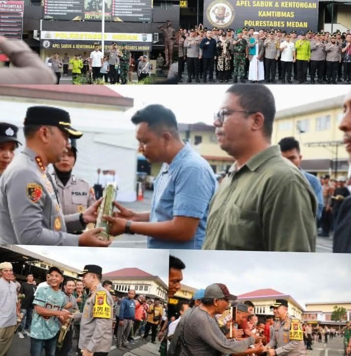 Polrestabes Medan melaksanakan kegiatan Apel Sabuk dan Kentongan Kamtibmas yang dirangkaikan dengan Halal Bi Halal Idul Fitri 1447 Hijriah pada Jumat, 27 Maret 2026 sekira pukul 16.00 WIB, bertempat di Lapangan Apel Mapolrestabes Medan.