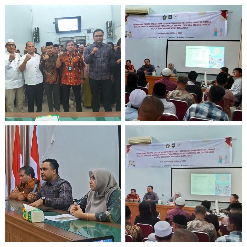Sigli-Badan Kesatuan Bangsa dan Politik (Kesbangpol) Kabupaten Pidie melaksanakan kegiatan Pembinaan Ormas dalam Memitigasi Risiko Sengketa dan Konflik Ormas dalam Rangka Mendukung Percepatan Rehabilitasi dan Rekonstruksi Pasca Bencana.