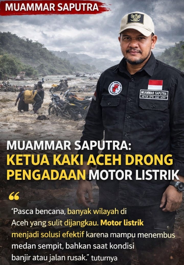 Ketua KAKI Aceh, Muammar Saputra, menyampaikan harapannya agar pemerintah pusat dapat memprioritaskan pengadaan sepeda motor listrik guna mendukung kelancaran distribusi program Makan Bergizi Gratis (MBG), khususnya di wilayah Aceh yang memiliki tantangan geografis dan rawan bencana.