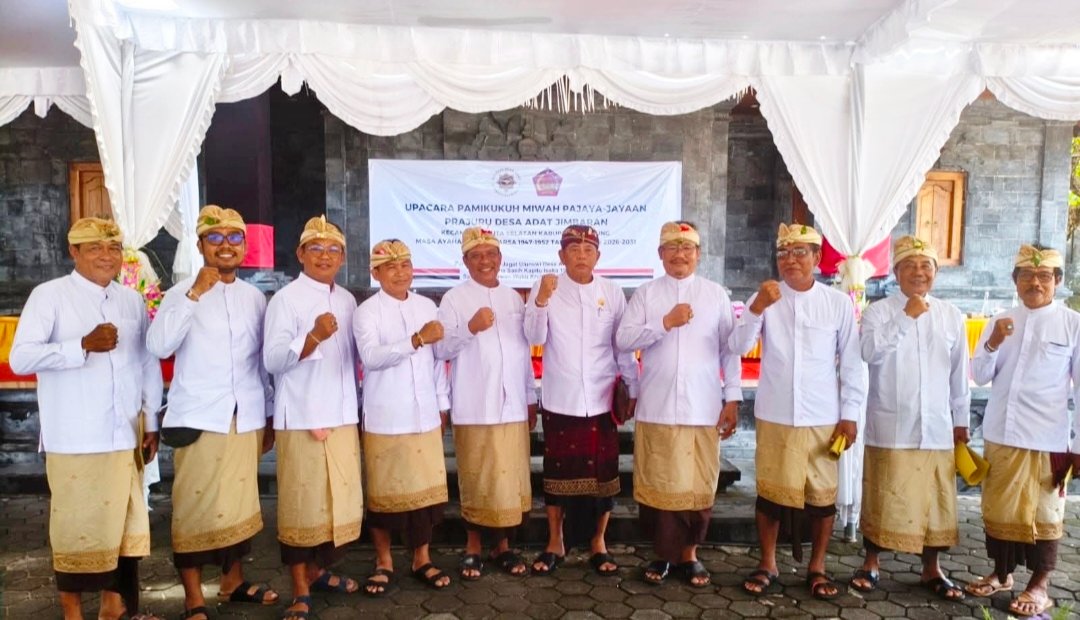 Bendesa Adat Jimbaran I Putu Subamia, S.H, dan Prajuru Desa Jimbaran, akhirnya resmi dilantik Majelis Madya Kabupaten Badung, pada sabtu (3/1/2026) bertepatan hari Purnama di pura Desa Jimbaran.