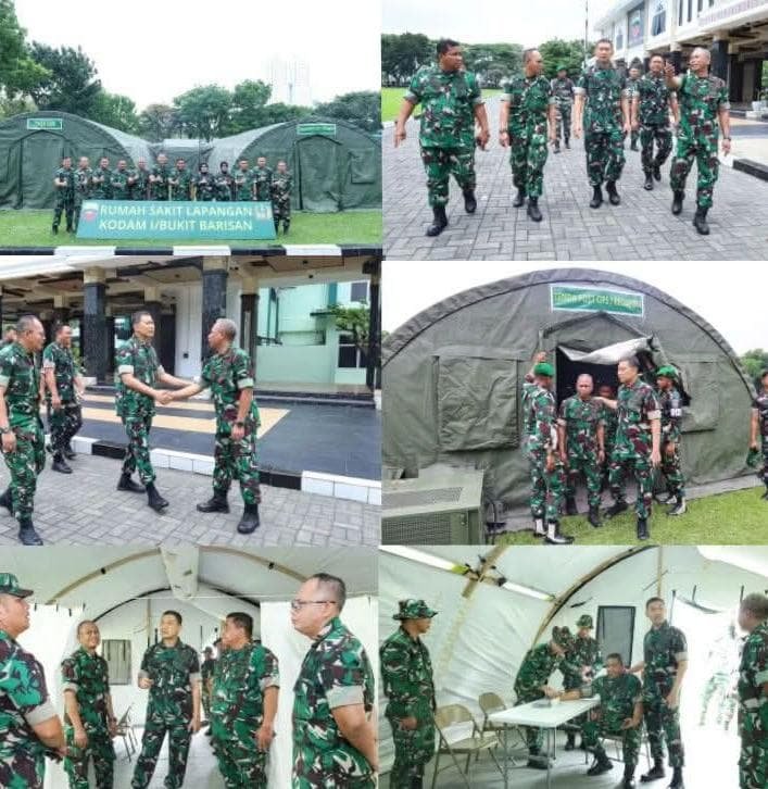 Pangdam I/Bukit Barisan, Mayjen TNI Hendy Antariksa meninjau langsung kegiatan gelar rumah sakit lapangan (Rumkitlap) yang dilaksanakan oleh Kesehatan Kodam I/Bukit Barisan (Kesdam I/BB) di Lapangan Hijau Makodam I/Bukit Barisan, Jumat (27/03/2026).