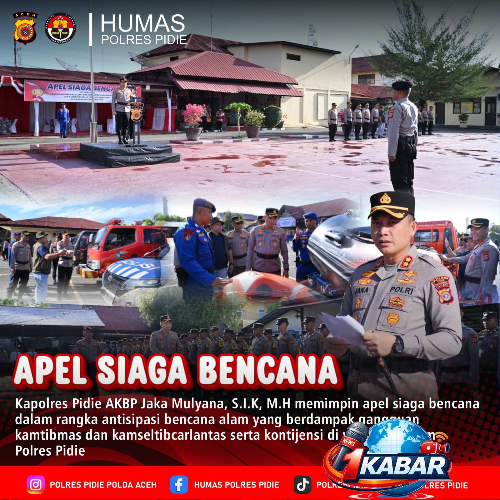 Sigli-Polres Pidie menggelar Apel Siaga Bencana dalam rangka mengantisipasi potensi bencana alam dan kebakaran hutan dan lahan (karhutla) di wilayah Kabupaten Pidie. Kamis, 16/4/2026.
