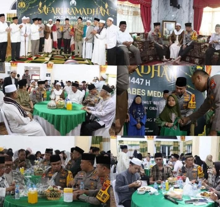 Safari Ramadhan Polda Sumatera Utara menjadi momentum penuh makna dalam mempererat silaturahmi antara Polri, Ulama, dan Tokoh Masyarakat. Kegiatan yang digelar di Pesantren Al-Kautsar, Jalan Pelajar, Kecamatan Medan Denai ini menghadirkan suasana kebersamaan yang hangat, sekaligus memperkuat Ukhuwah Islamiyah di Bulan Suci Ramadhan.