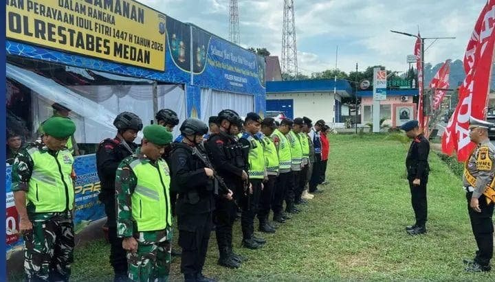 Dalam rangka mendukung kelancaran Perayaan Idul Fitri 1447 H, Personel Batalyon A Pelopor Satuan Brimob Polda Sumatera Utara turut ambil bagian dalam Pelaksanaan Operasi Kepolisian Terpusat Ketupat Toba-2026. Kegiatan ini dilaksanakan di Pos Pengamanan (Pos Pam) Sembahe, Jalan Jamin Ginting, pada Rabu (18/03/2026).