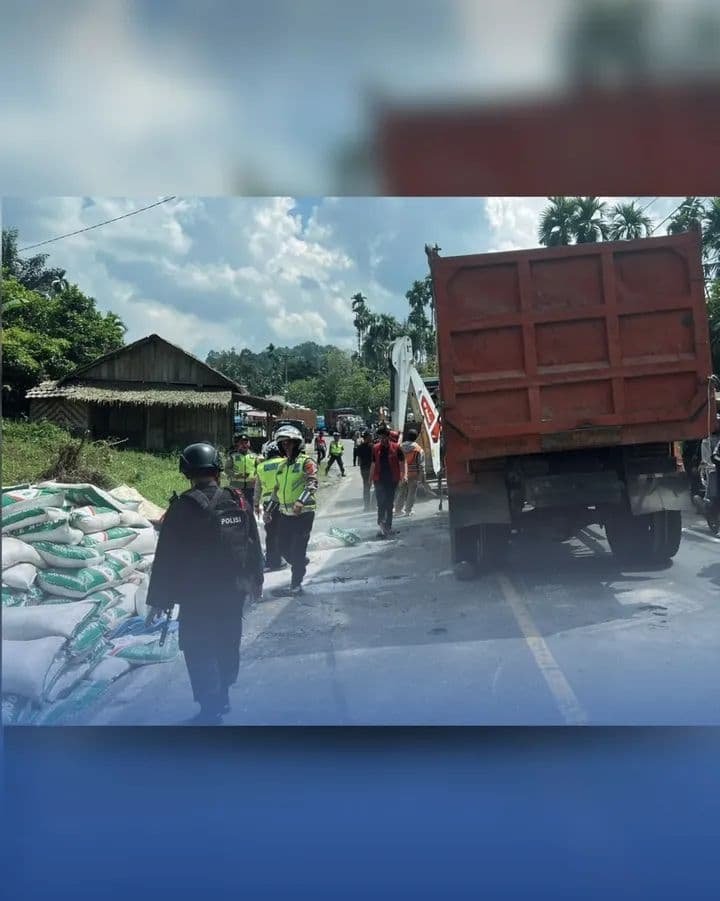 Kegiatan ini dilakukan menyusul terjadinya kecelakaan tunggal yang melibatkan satu unit truk roda enam bermuatan pupuk. Dengan kesigapan dan koordinasi yang baik, Personel Brimob Polda Sumatera Utara langsung melakukan evakuasi kendaraan serta mengamankan lokasi guna mencegah kemacetan dan potensi kecelakaan lanjutan.