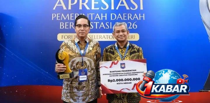 Penghargaan membanggakan tersebut secara langsung diserahkan Menteri Dalam Negeri (Mendagri), Tito Karnavian kepada Wali Kota Medan, Rico Tri Putra Bayu Waas dalam acara Apresiasi Pemerintah Daerah Berprestasi Tahun 2026, di Palembang, Sumatera Selatan, pada Sabtu (25/04/2026).
