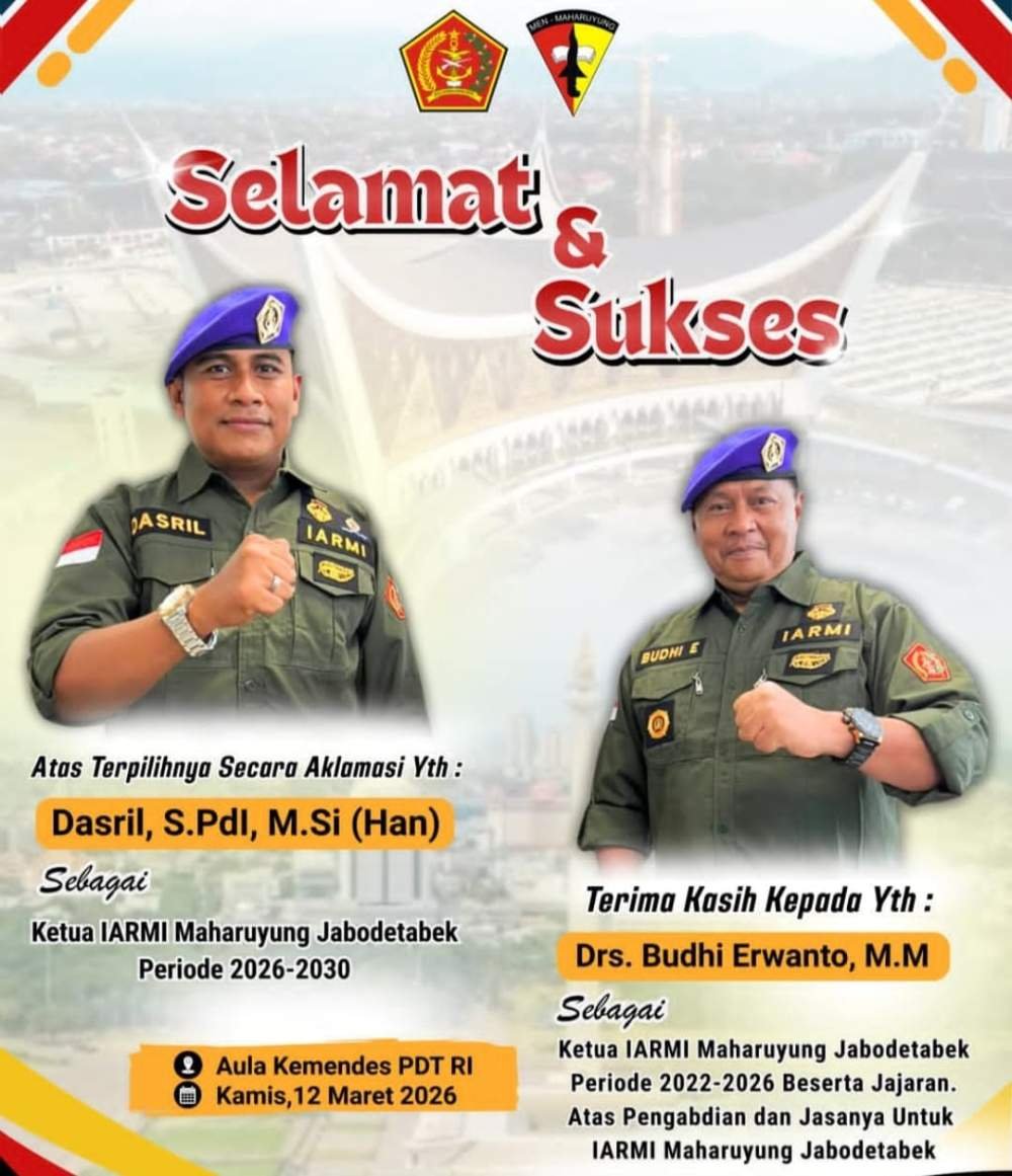 Dengan Telah Berakhirnya masa kepengurusan IARMI (Ikatan Alumni Resimen Mahasiswa Indonesia) Maharuyung Jabodetabek, maka diadakanlah Musyawarah untuk kepemimpinan organisasi ini kedepan. IARMI Maharuyung Jabodetabek melaksanakan musyawarah / rembug yang bertempat di Auditorium Kemendes PDT RI pada Kamis (12-03-2026).