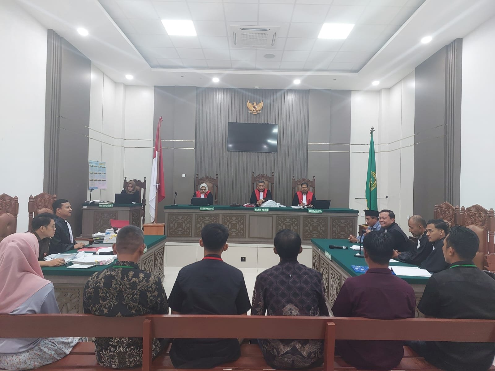 Persidangan yang dipimpin majelis hakim Tipikor berlangsung tertib dengan agenda lanjutan pemeriksaan perkara. Para terdakwa hadir didampingi penasihat hukum, sementara JPU menyampaikan sikap dan materi sesuai tahapan persidangan.