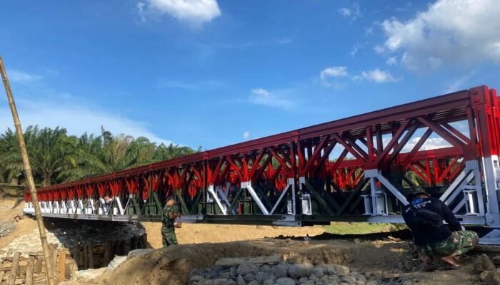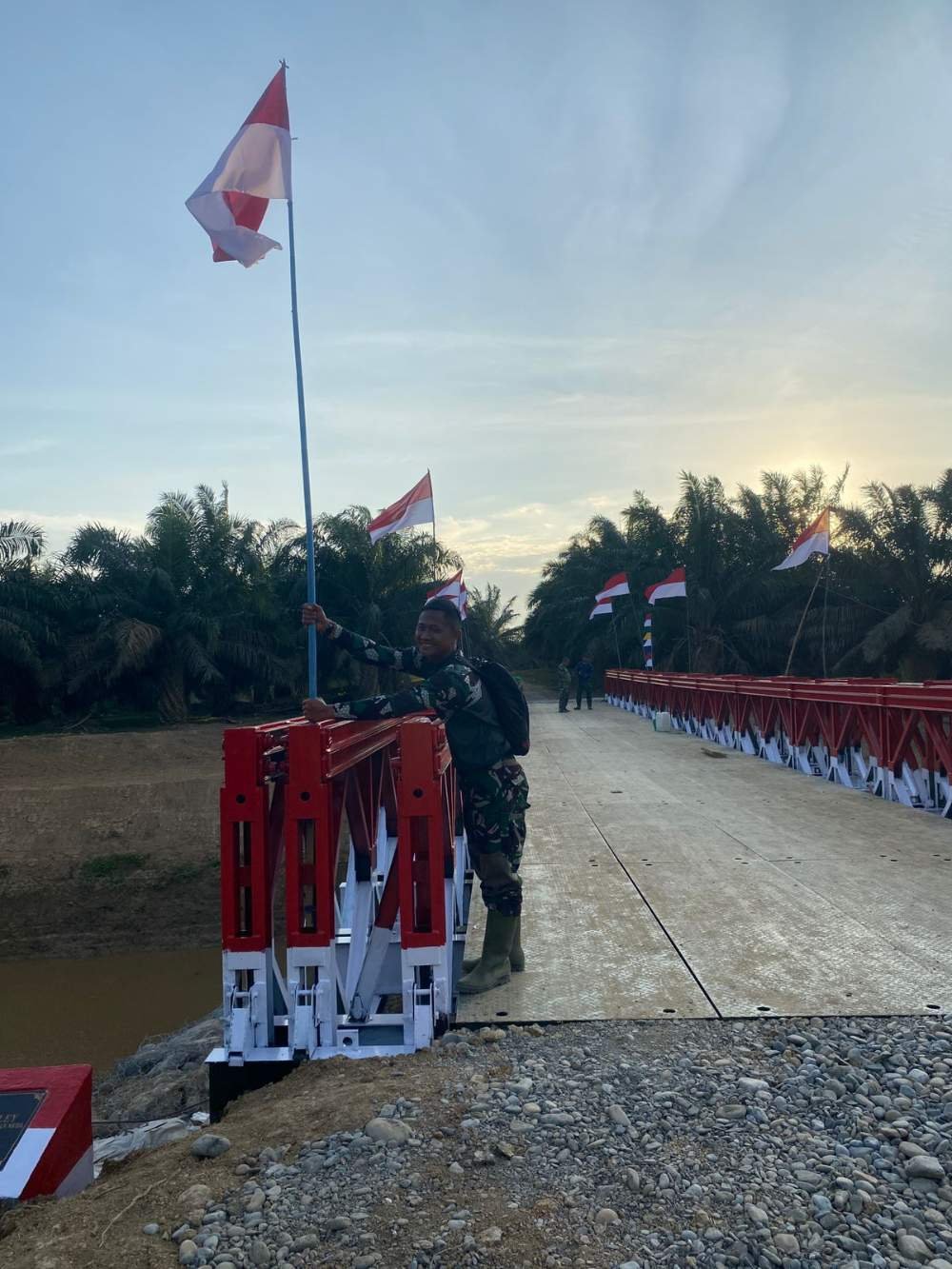 Tentara Nasional Indonesia (TNI) Angkat Darat memastikan proses pembangunan jembatan Modular dilakukan secara cepat dan intensif.