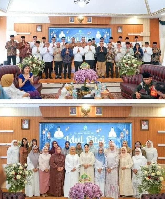 Wali Kota Medan, Rico Tri Putra Bayu Waas bersama dengan Ketua Tim Penggerak Pemberdayaan Kesejahteraan Keluarga (TP PKK) Kota Medan, Ny. Airin Rico Waas menyambut para tamu yang hadir dengan penuh kehangatan. Tampak hadir dalam Halal Bi Halal itu Wakil Wali Kota Medan, H. Zakiyuddin Harahap beserta Istri Ny. Martinijal Zakiyuddin Harahap, Bupati Tapanuli Utara, Jonius Taripar Parsaoran Hutabarat, Bupati Simalungun, Anton Achmad Saragih, mantan Wali Kota Medan, Rahudman Harahap, Sekretaris Daerah Kota Medan, Wiriya Alrahman beserta Istri Ny. Ismiralda Wiriya Alrahman, unsur Forkopimda Kota Medan, sejumlah Konsulat Jenderal (konjen) Negara Sahabat di Medan, Anggota DPRD Kota Medan, Pimpinan Perangkat Daerah di lingkungan Pemerintah Kota (Pemko) Medan, Tokoh Agama, serta Tokoh Masyarakat.(m-40)