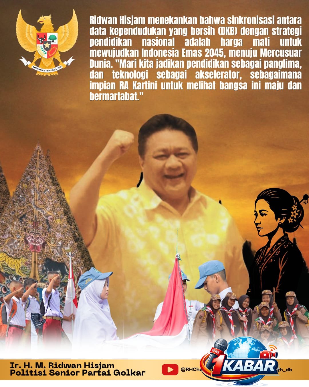 Sebagai penutup, Ridwan Hisjam menekankan bahwa sinkronisasi antara data kependudukan yang bersih (DKB) dengan strategi pendidikan nasional adalah harga mati untuk mewujudkan Indonesia Emas 2045, menuju Mercusuar Dunia. “Mari kita jadikan pendidikan sebagai panglima, dan teknologi sebagai akselerator, sebagaimana impian RA Kartini untuk melihat bangsa ini maju dan bermartabat,” pungkasnya.